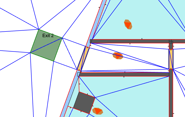 Boundaries formed by exits represent the endpoint of a person’s movement. When reaching such a boundary, the person is considered evacuated and is removed from the simulation. These boundaries can only be located on horizontal areas.
