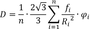 where $R_i$ - is the distance between the $i$-th person, with horizontal projection area $f_i$ and the person for whom the local density is being calculated. $φ_i$ - is a normalization function that accounts for the angular distance between the $i$-th person and the person for whom the local density is being calculated.