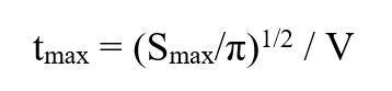 Knowing the linear flame spread rate (V), and the maximum burning area (S_max), it is possible to determine the time it takes for the fire to reach the specified area with circular spread.