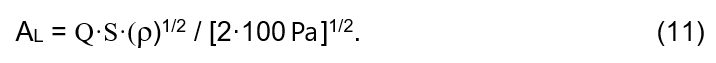 If the Volumetric Air Permeability at 100 Pa (Q) is set, the formula for calculating AL can be obtained by comparing formulas (5) and (6):