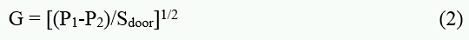 The mass flow rate of air (G) passing through the gaps of door and window openings depends on the pressure difference (Δp) on either side of the opening.
