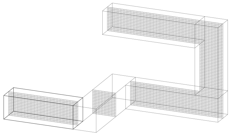 Simulation in FDS occurs in the computational domain - the volume of space where fire development is of interest. The computational domain consists of one or more elementary volumes - meshes. A mesh is a volume of space in the shape of a rectangular parallelepiped: